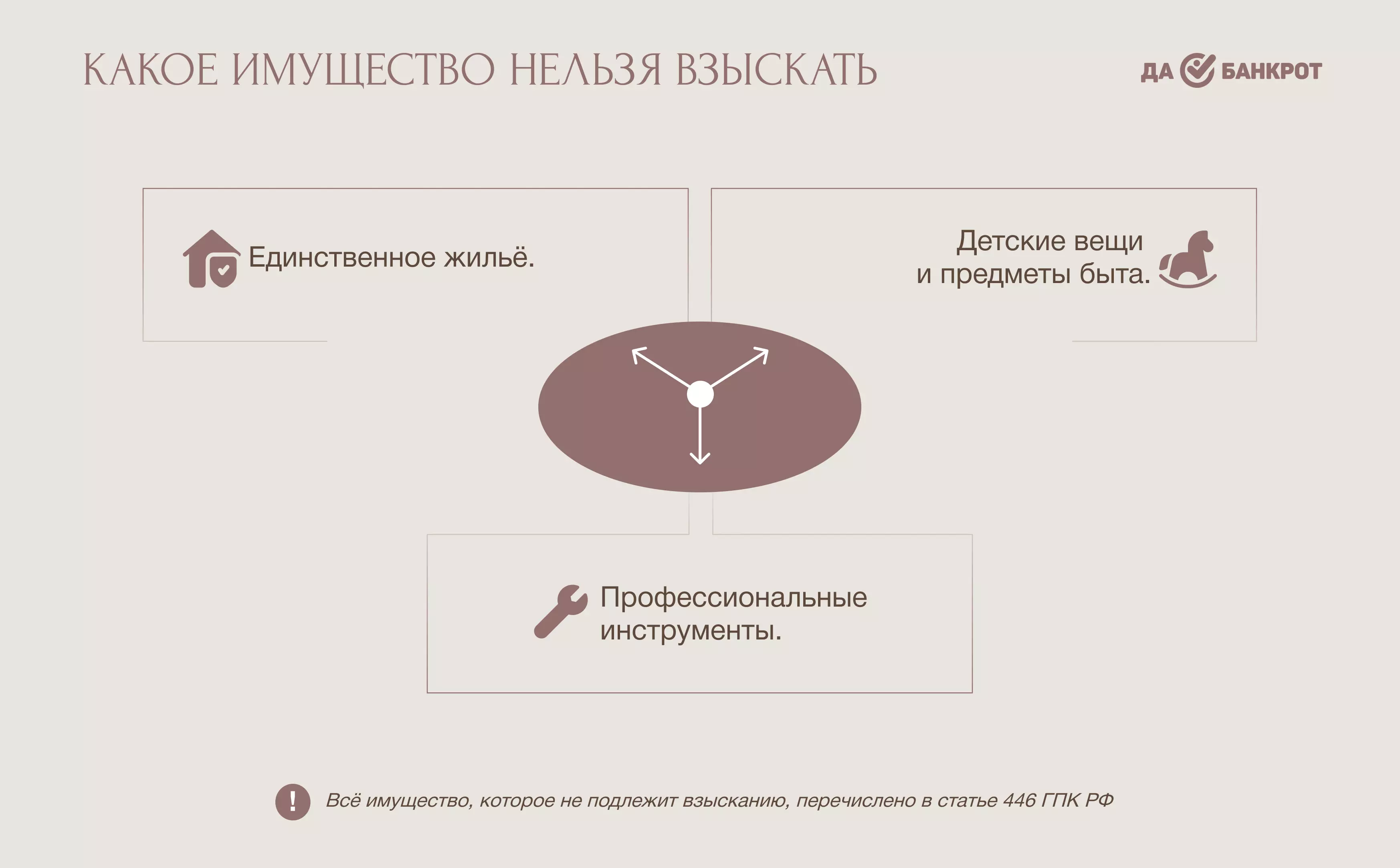 Вещи, необходимые для жизни и развития детей, а также базовые предметы быта — не изымаются у семьи. Это гарантирует, что банкротство не оставит семью без самого необходимого.