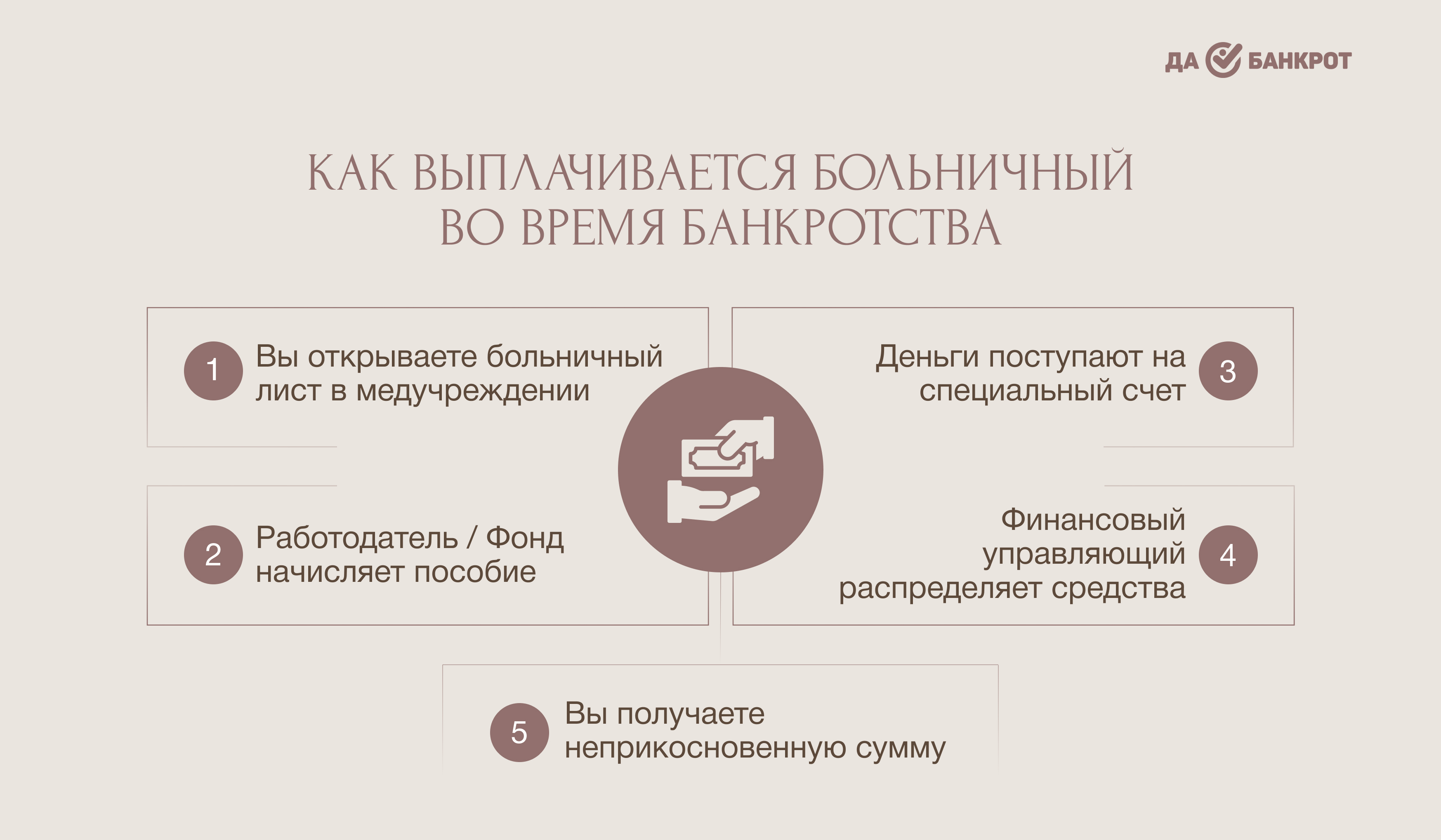 Когда вы на больничном во время банкротства, важно понимать, что процедура выплаты пособия практически не отличается от обычной. Разница заключается только в порядке перечисления средств и контроле со стороны финансового управляющего.