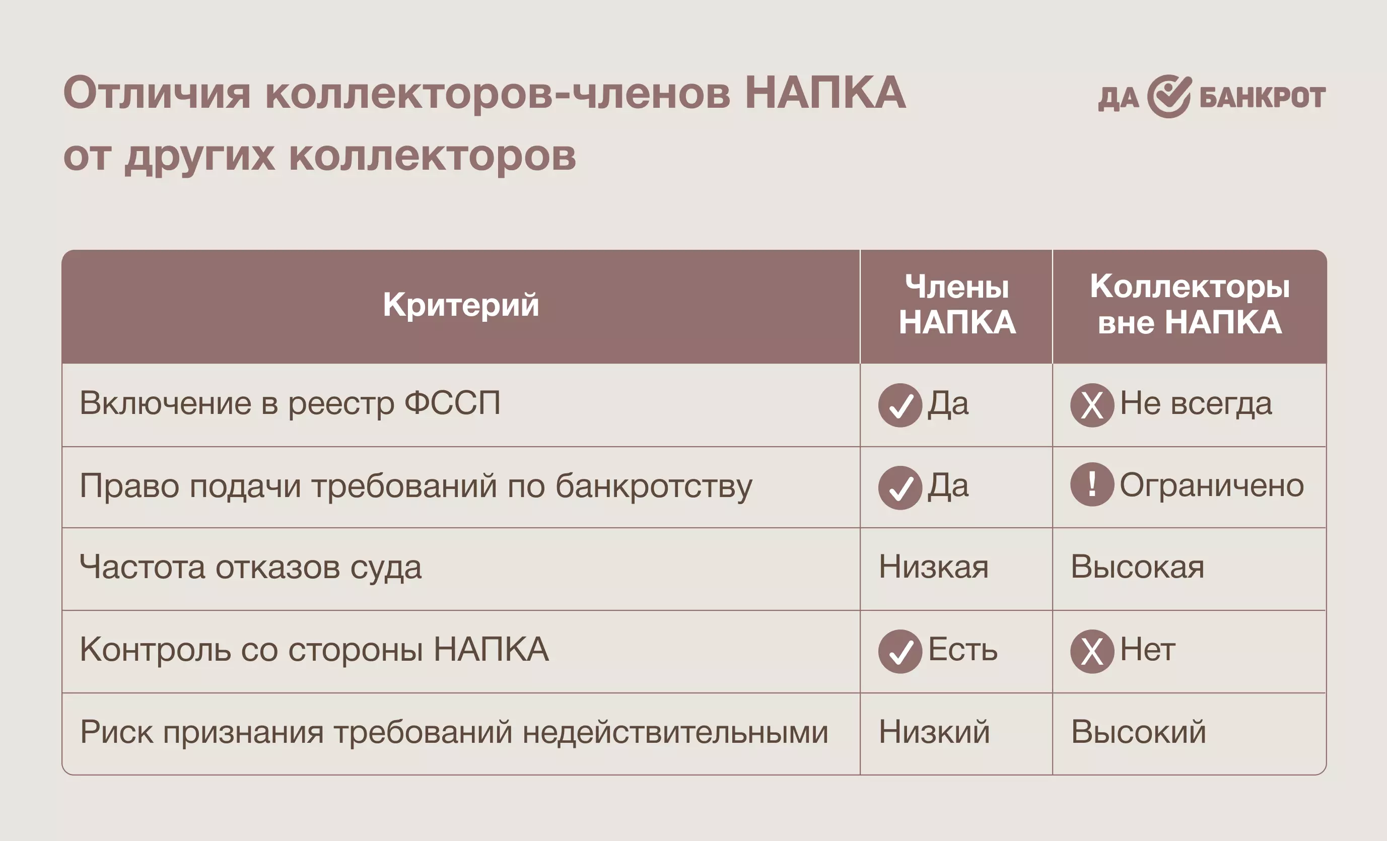 Требования профессиональных участников ассоциации обрабатываются быстрее и вызывают меньше вопросов у суда. Коллекторы вне НАПКА часто сталкиваются с отказами из-за нарушений формы или отсутствия доверия к их практике.