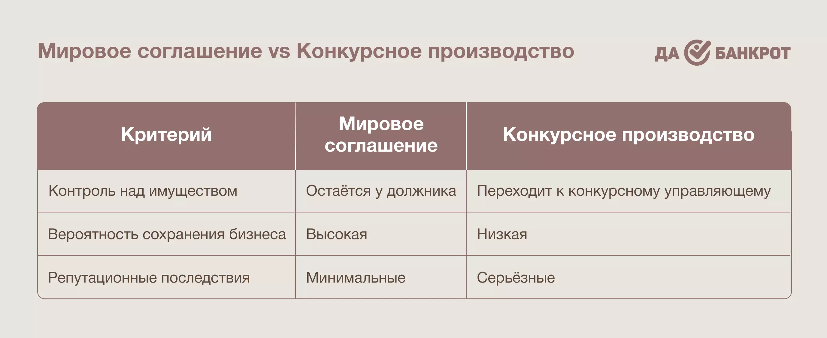 В отличие от конкурсной процедуры, где имущество должника продаётся, мировое соглашение строится на взаимных уступках сторон. Оно основывается на взаимном согласии сторон, готовности к уступкам и точном выполнении оговоренных условий.