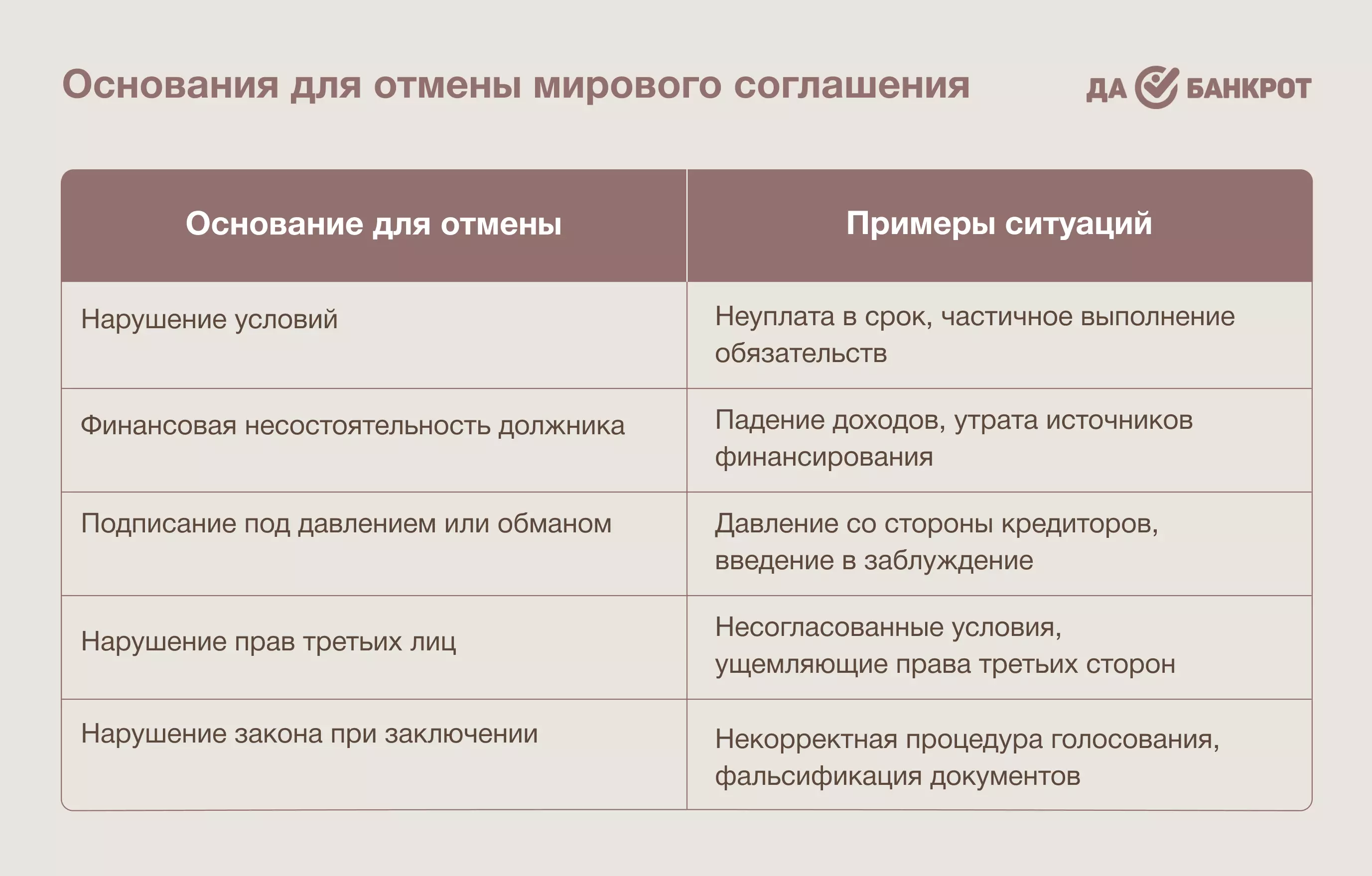 Условия, при которых мировое соглашение может быть отменено
