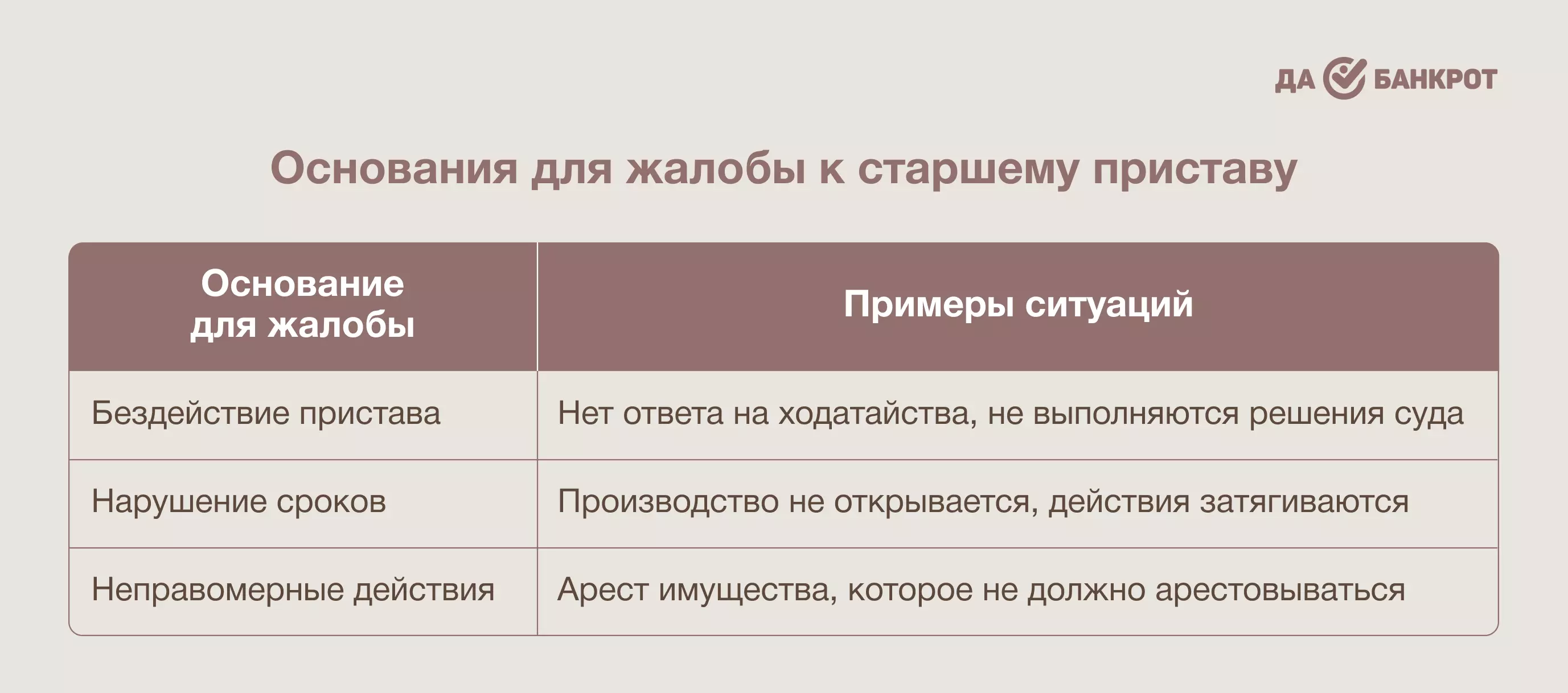 Обращение к старшему приставу при банкротстве возможно в следующих случаях: